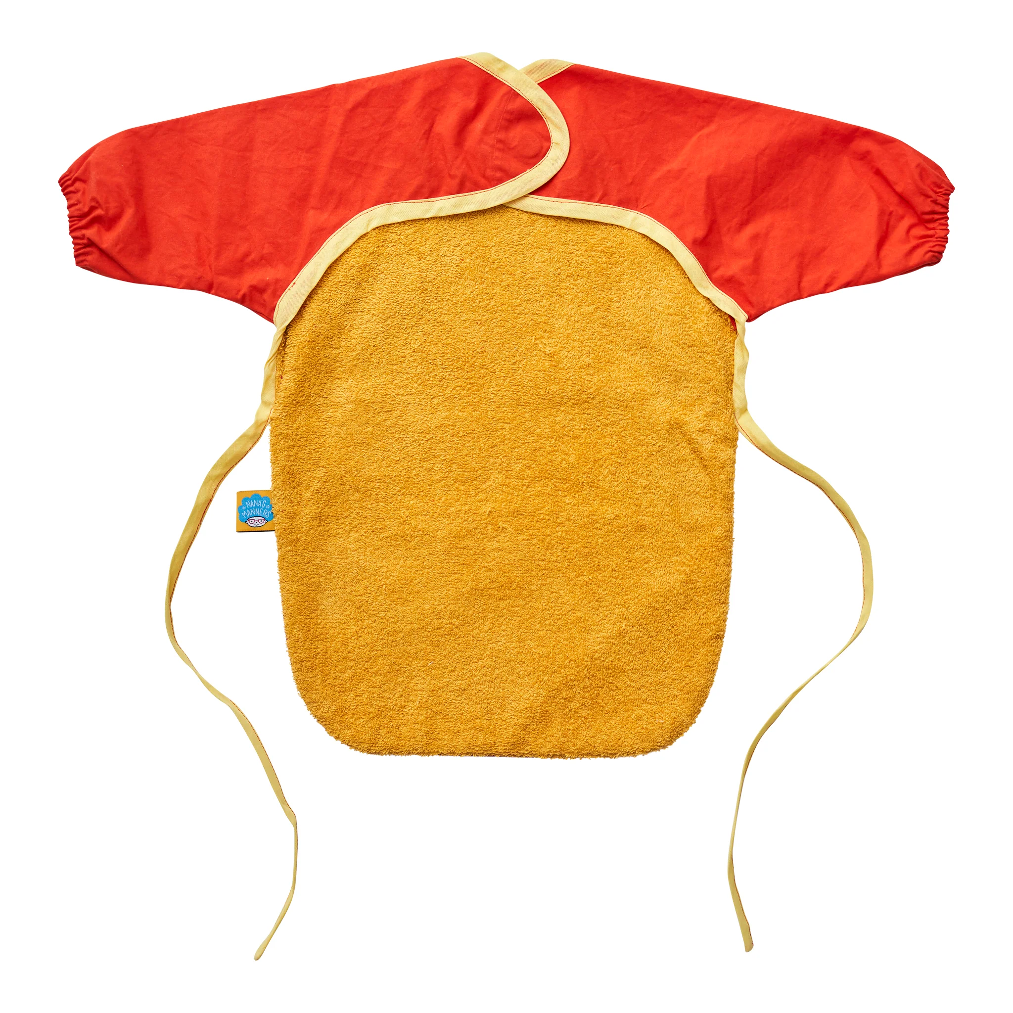 Oryginalny, zastrzeżony i niepowtarzalny śliniak z długim rękawem brytyjskiej marki Nana's Manners. Dumnie uszyty ręcznie ze 100% bawełny w Londynie. Szlachetne, oddychające materiały pokryte wodoodpornym woskiem naturalnym. Wyjątkowy produkt dla rodziców poszukujących nietuzinkowych rozwiązań stworzonych w trosce o środowisko, w którym przyjdzie żyć naszym dzieciom oraz oddychalność produktu, w którym przebywają.
