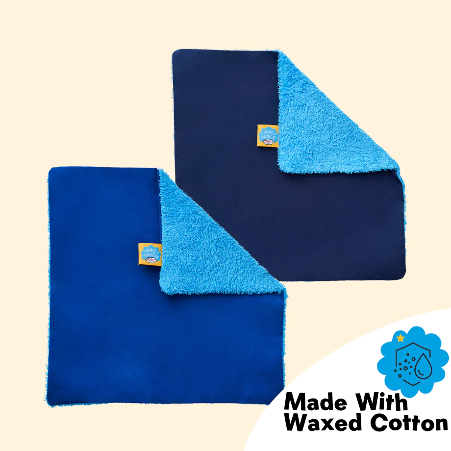 Nana's Manners Etap 3, Serwetki 2 szt. wodoodporne 0% plastiku Navy + Royal Blue bawełna woskowana wielokrotnego użytku